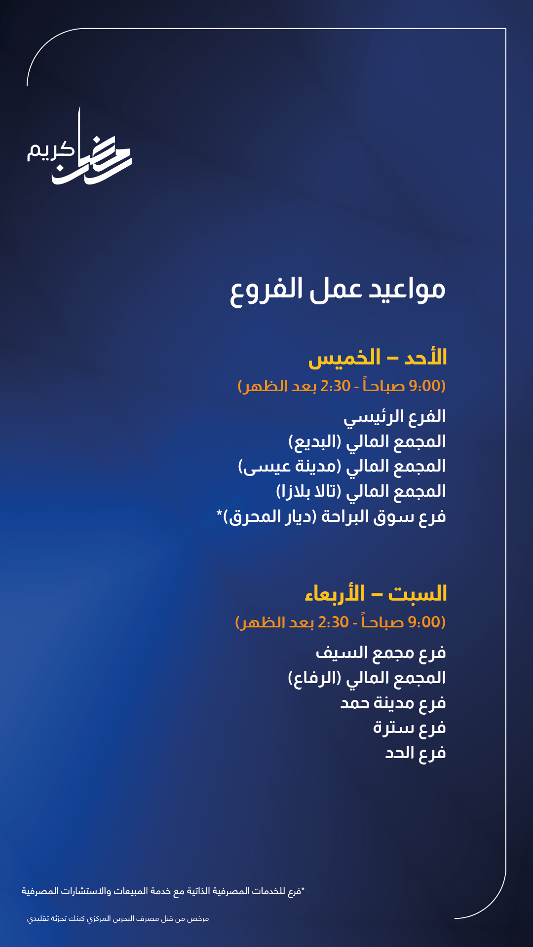 السبت - الاربعاء : (8:00 صباحا - 3:00 بعد الظهر)