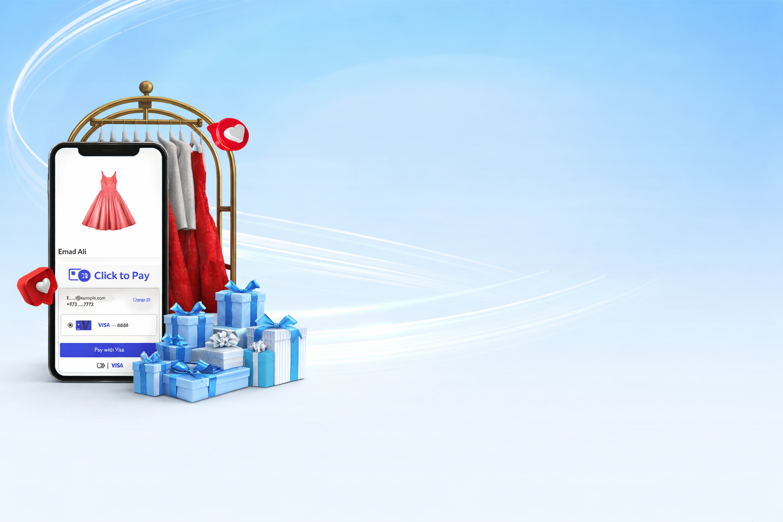 تسوّق عبر الإنترنت بكل ثقة، واختر ما تريد من المنتجات لدى التجار المشاركين بمجرد ظهور رمز Click to Pay لإتمام الدفع بسرعة وسهولة