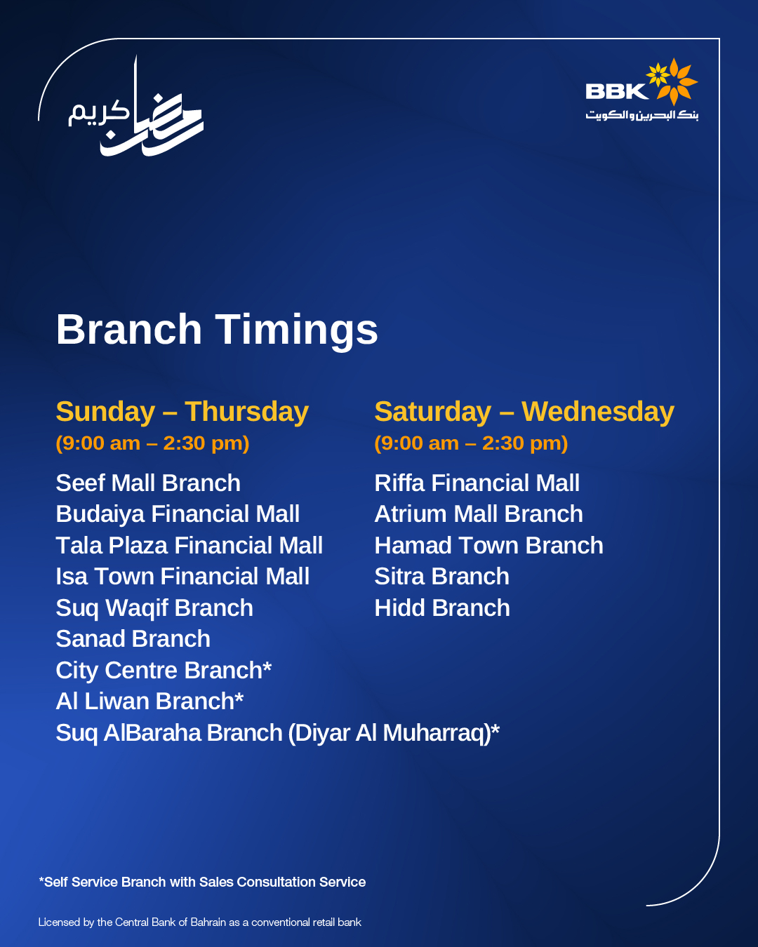 Saturday - Wednesday: (9:00 am - 2:30 pm)