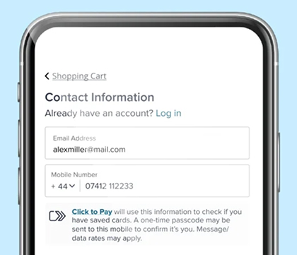 Provide your mobile number at checkout to find your linked Click to Pay card(s).